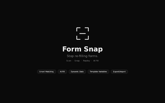 Belangrijke functies van Form Snap omvatten AI Fill voor het genereren van realistische testgegevens, slimme veldmatching op basis van verschillende attributen, en de mogelijkheid om dynamische gegevens te gebruiken. Gebruikers kunnen ook sjabloonvariabelen toepassen en bestanduploads vastleggen en herhalen. Met de mogelijkheid om profielen te exporteren en importeren als JSON, en een handige sneltoets voor onmiddellijke scans, is deze tool ideaal voor QA-ingenieurs en ontwikkelaars die tijd willen besparen.